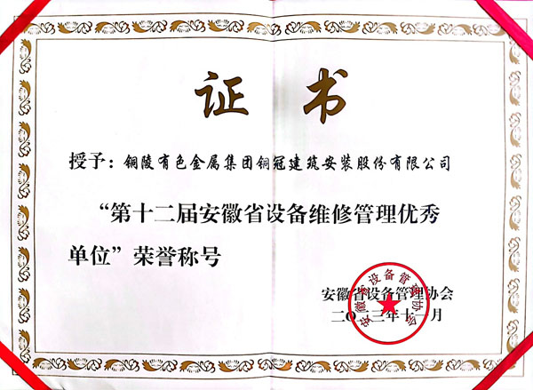 第十二屆安徽省設(shè)備維修管理優(yōu)秀單位