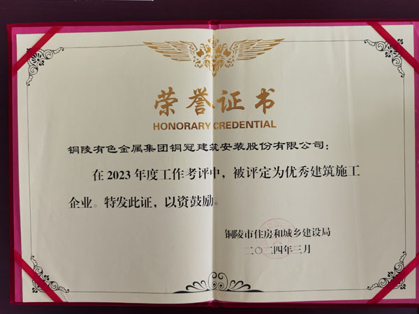 銅陵市優(yōu)秀建筑施工企業(yè)(2023年度)