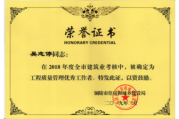 • 吳志停工程質(zhì)量?jī)?yōu)秀工作管理者