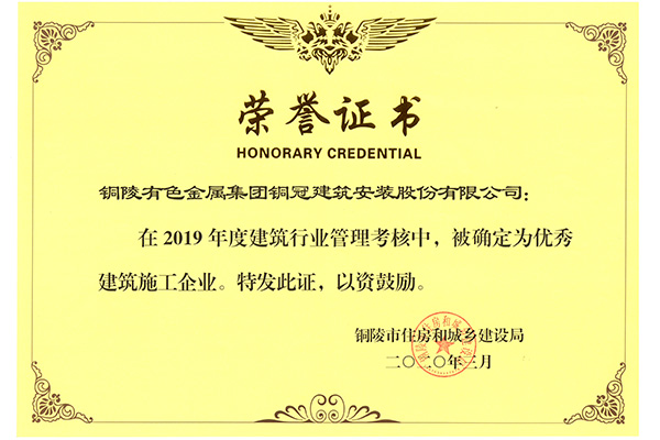 • 2019優(yōu)秀建筑施工企業(yè)