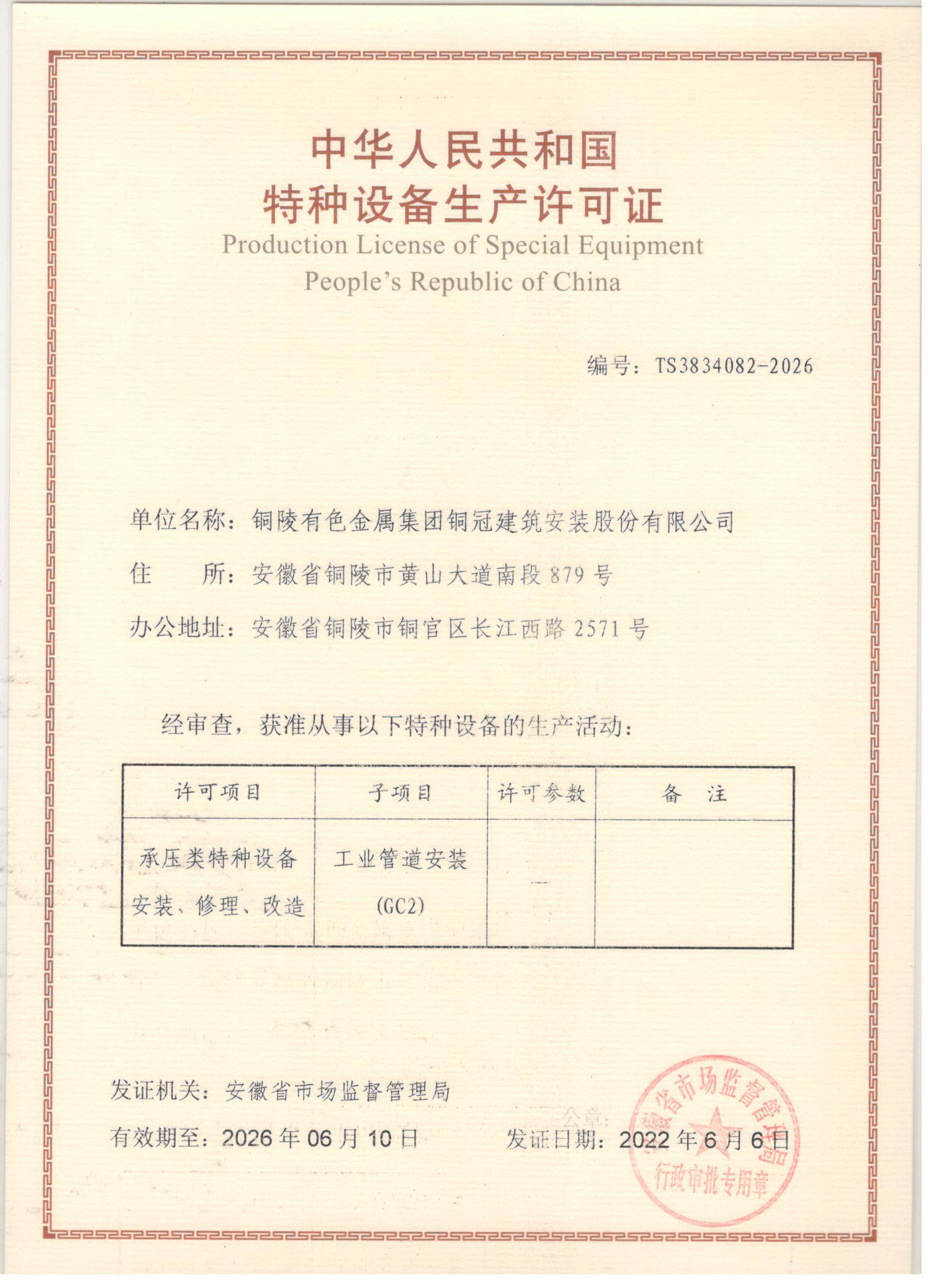 有色金屬工業(yè)建設工程質(zhì)量檢測機構(gòu)資質(zhì)證書
